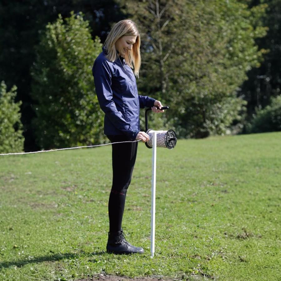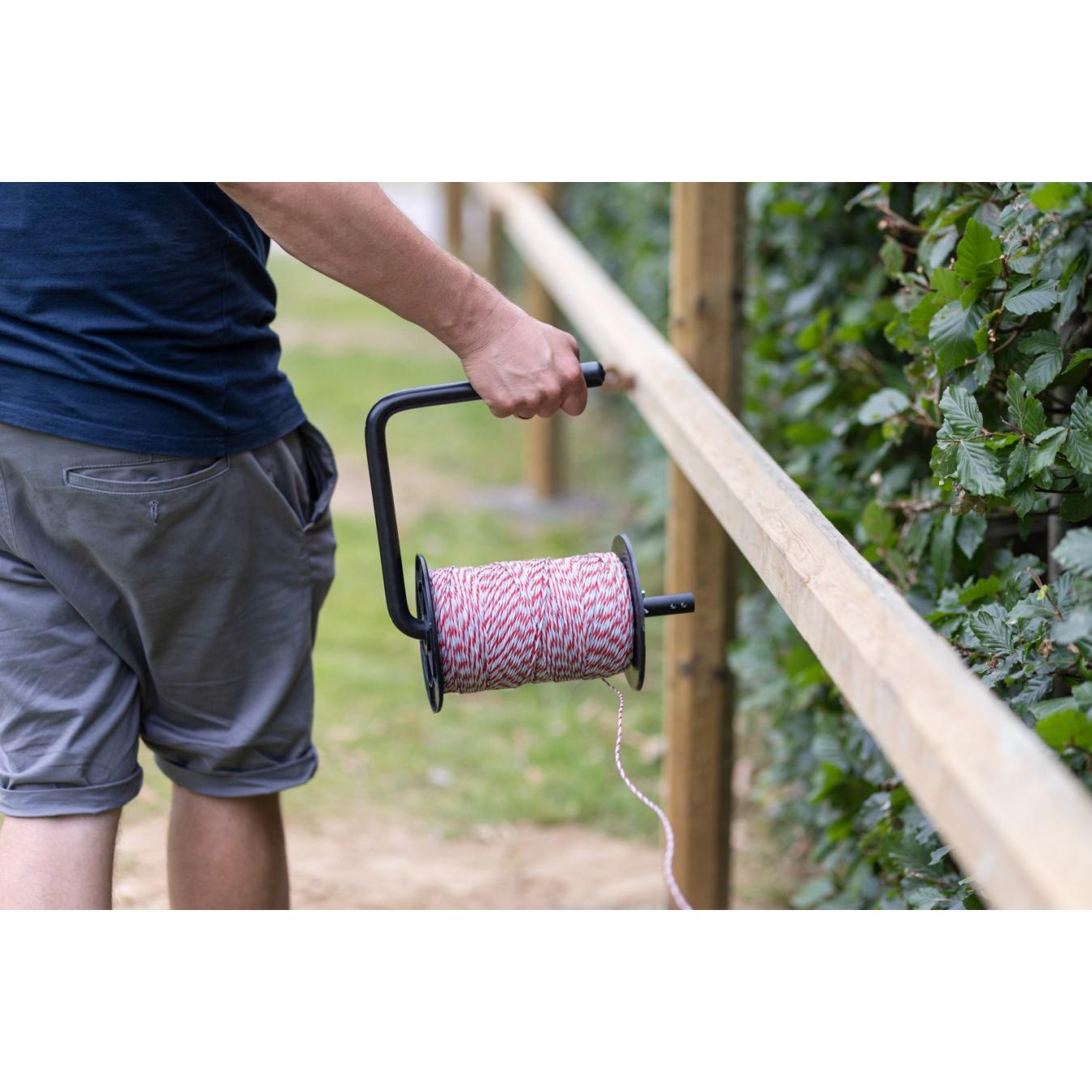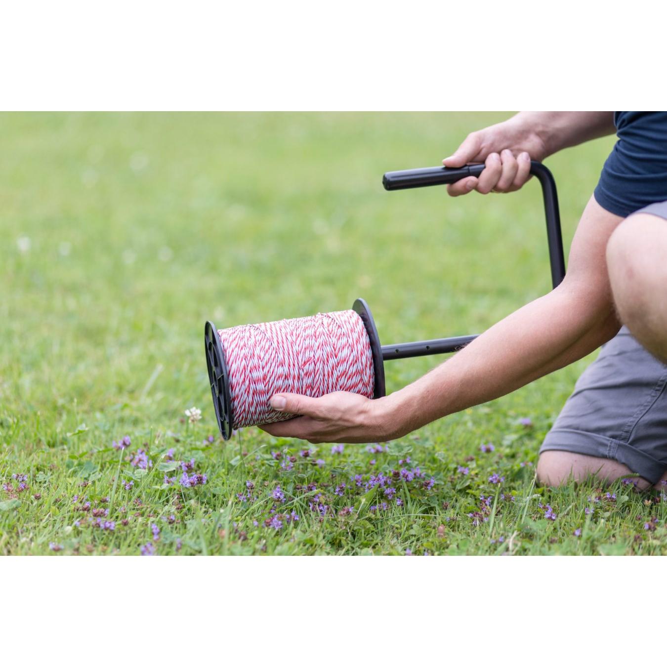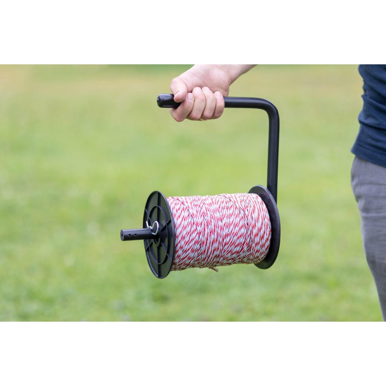 Mâner practic pentru derularea cu o singură mână a conductorului, permițând în același timp fixarea directă pe izolatori. Soluție rapidă și comodă pentru garduri electrice mobile.