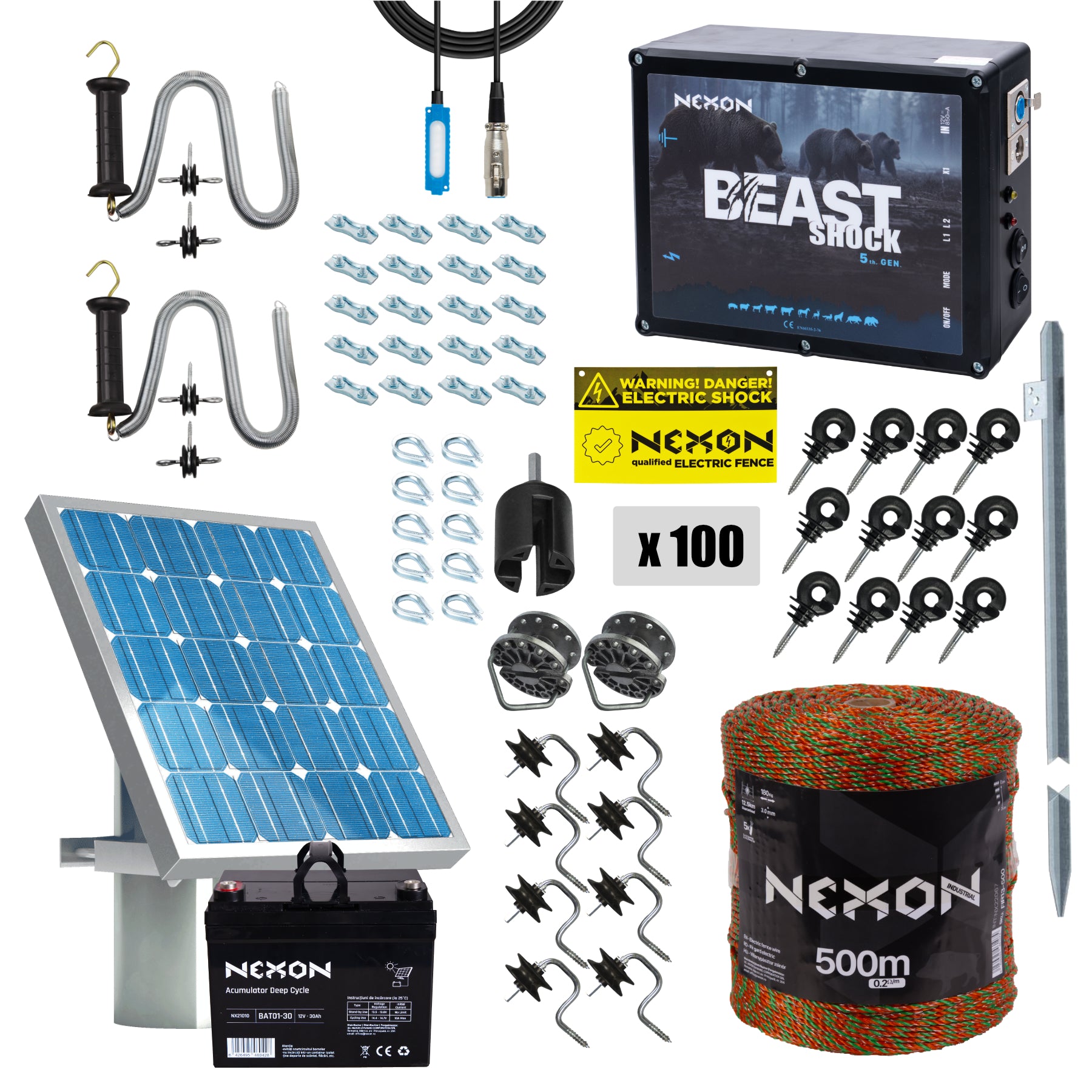 Pachet gard electric NEXON BeastShock 8.5J cu Solar, Fir 500m, 180kg