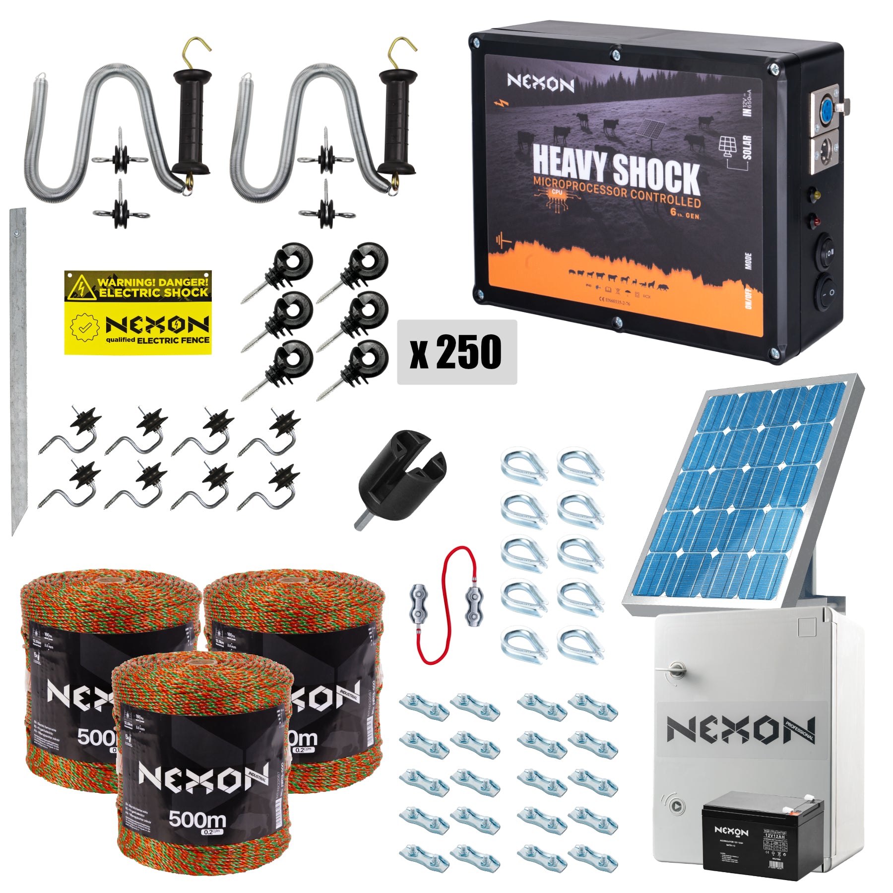 Pachet gard electric NEXON HeavyShock PRO 2.5J cu Solar, Fir 1500m, 180kg