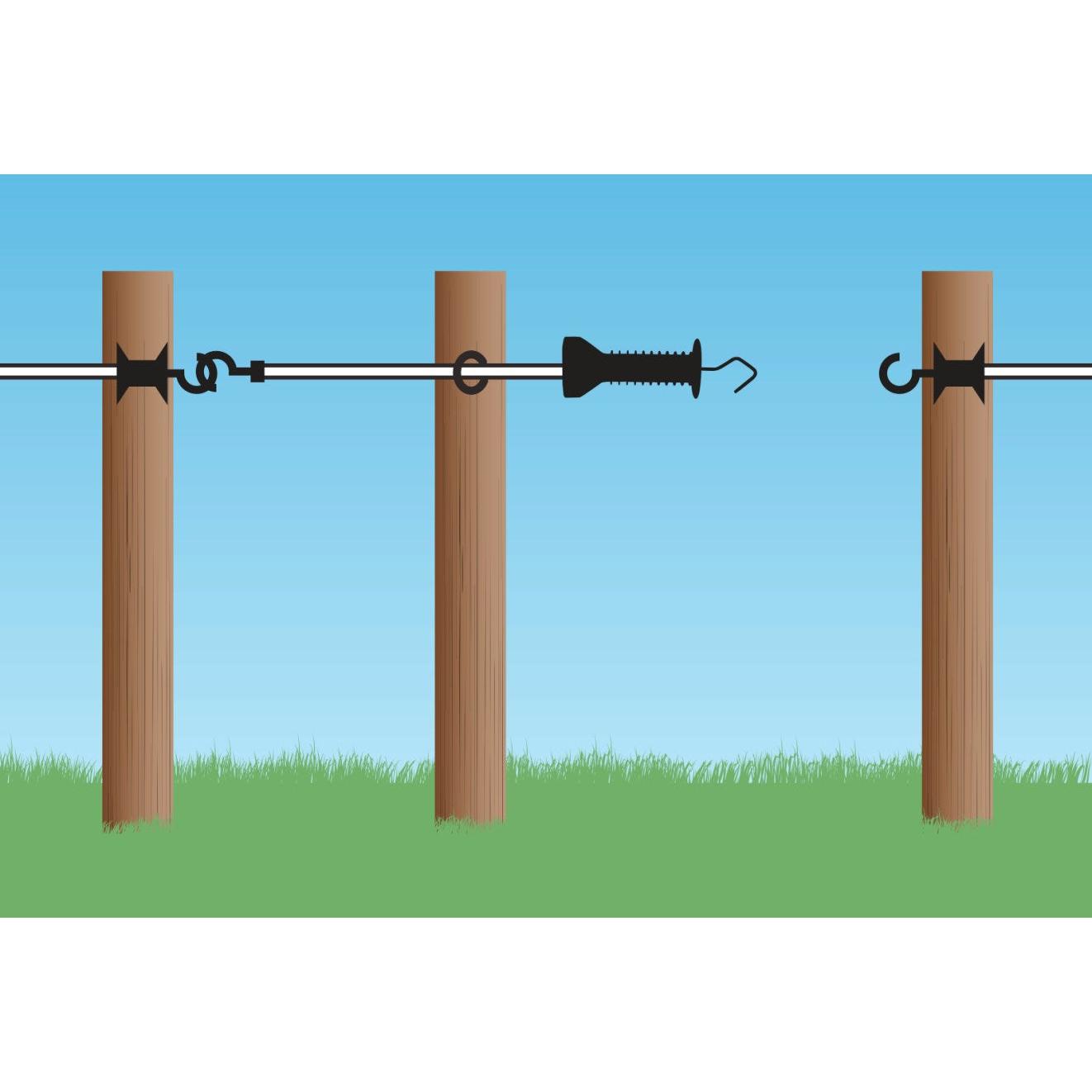 Poarta gard electric cu coardă elastică – disponibilă în două dimensiuni (3–6 m sau 4,5–9 m)