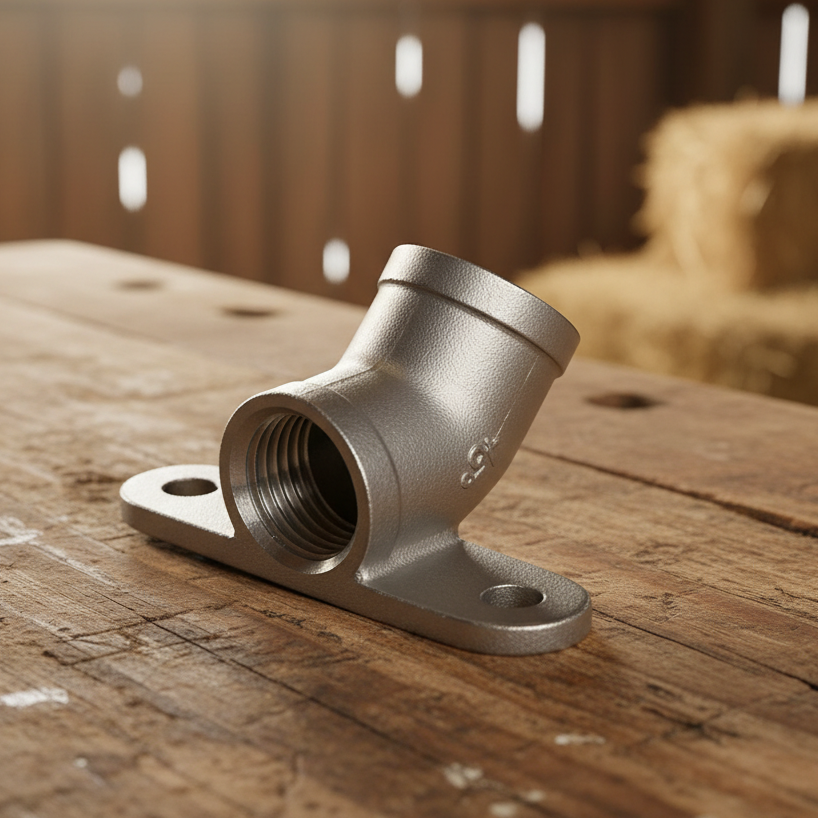 Acest racord cotit la 45° este realizat din oțel inoxidabil și este conceput special pentru fixarea suzetelor de adăpare. Sistemul de prindere prin înșurubare oferă o montare stabilă și de durată.