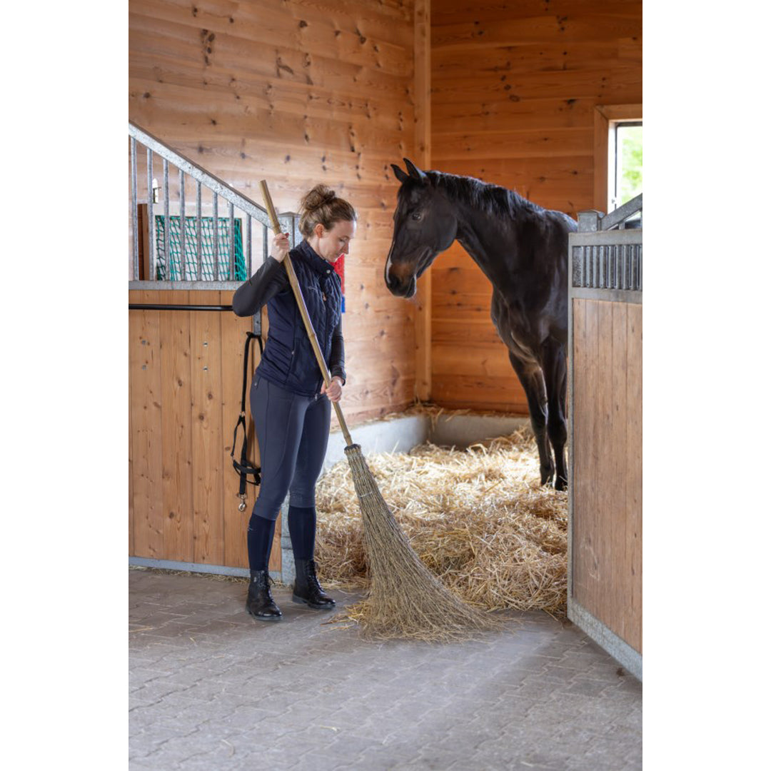 Mătura din bambus natural este extrem de ușoară și stabilă, ideală pentru grajduri și curți, deoarece nu reține paie sau fân. Fabricată din materiale regenerabile și compostabile, este o soluție ecologică și rezistentă pentru utilizarea zilnică.