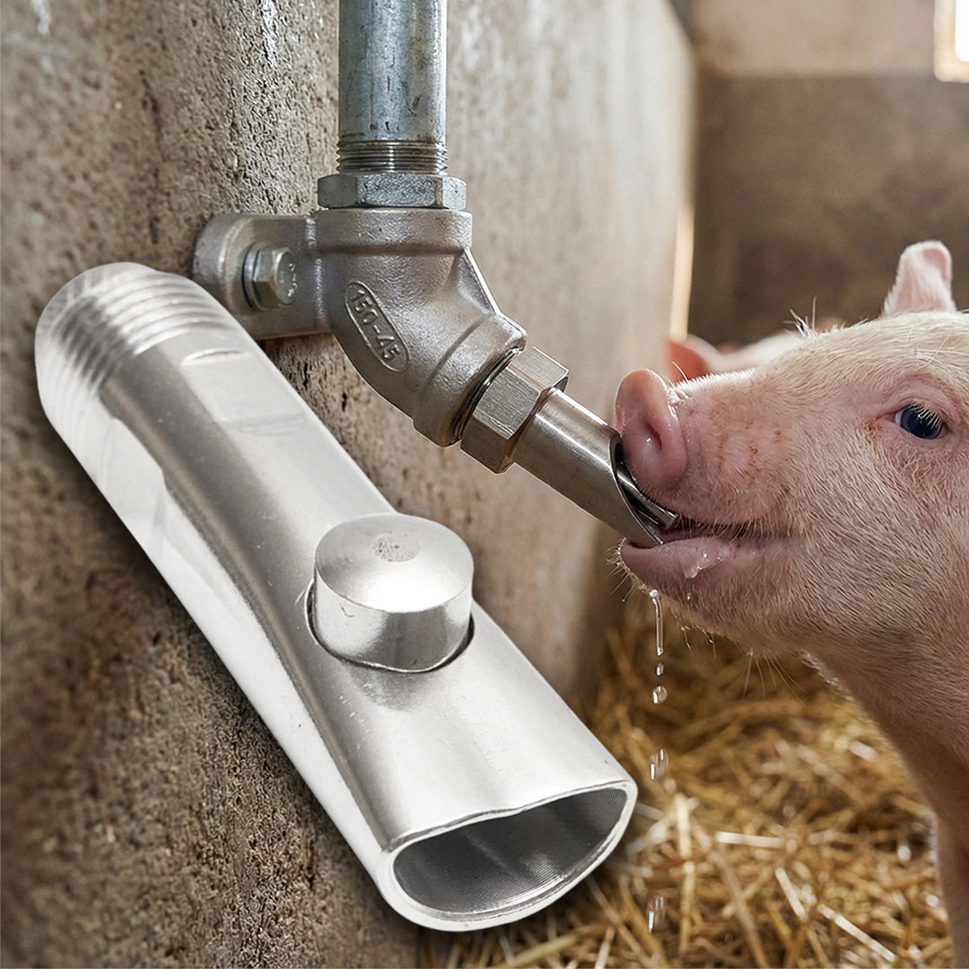 Suzetă automată din oțel inoxidabil cu bilă, proiectată pentru adăpători de porci și viței. Se montează direct pe conducta metalică și asigură o alimentare eficientă și igienică cu apă.